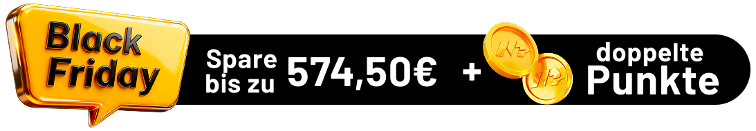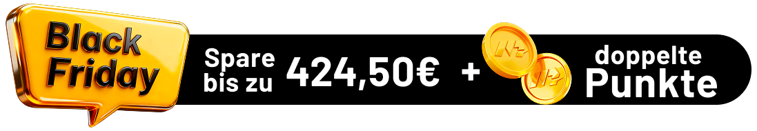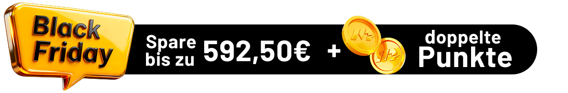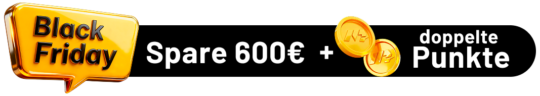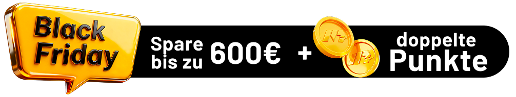 Zusätzlich zum Sammeln von Punkten durch das Abonnieren und Teilen der Kampagne erhalten Sie exklusive Black-Friday-Belohnungen – **doppelte Punkte bei jedem Einkauf!** Verwenden Sie Ihre Punkte, um Rabattgutscheine, Gratisprodukte, verlängerte Garantien und mehr einzulösen.