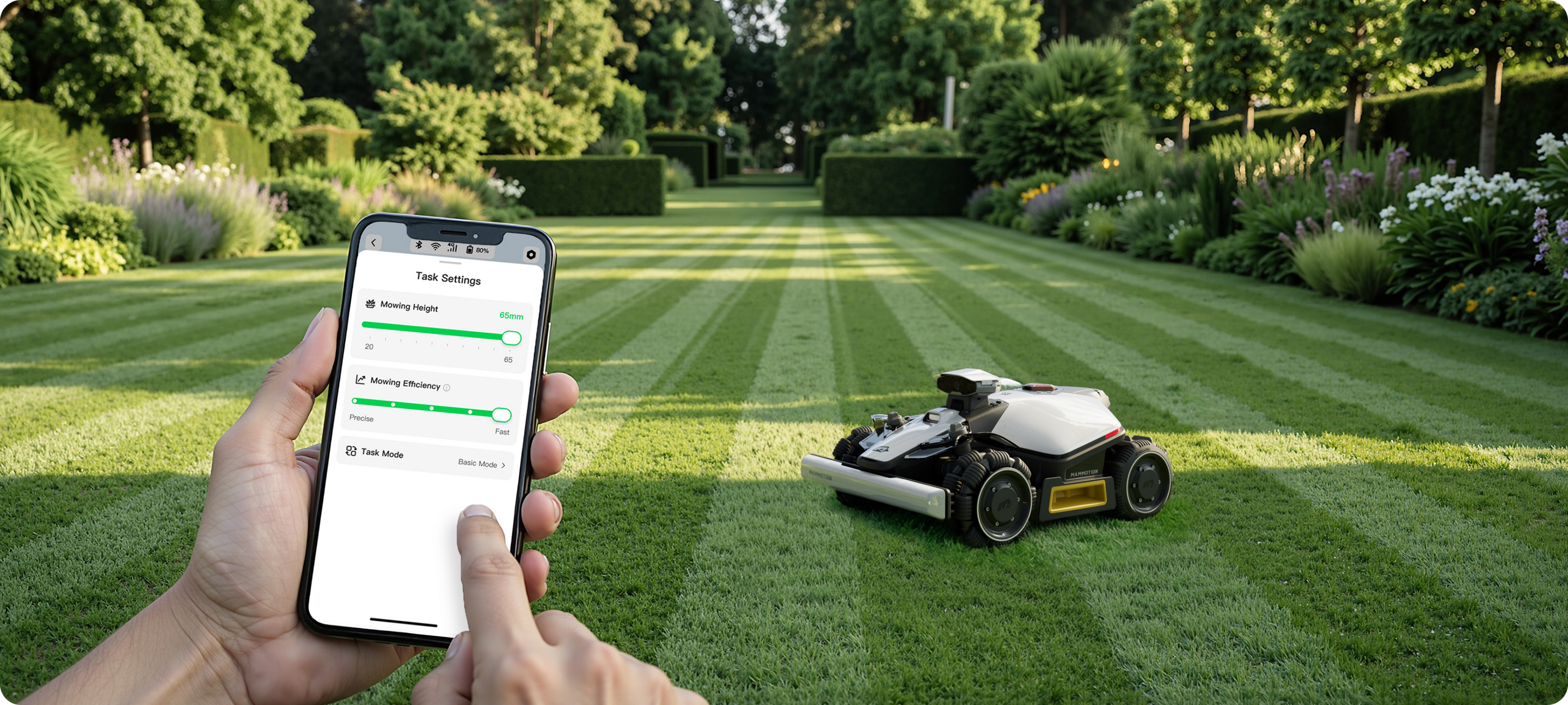 App-gesteuerte Mähmuster und Zonen. Mühelose Anpassung.