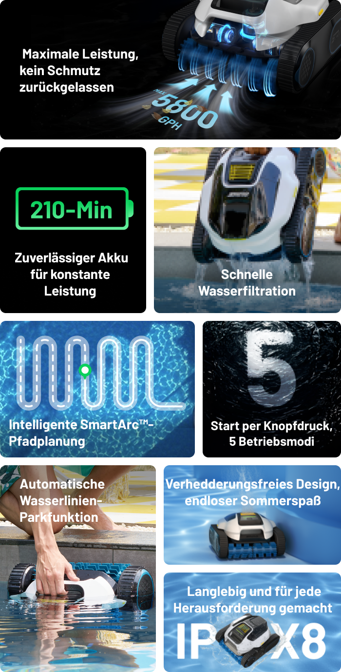 5800 GPH Saugleistung für besonders intensive Reinigung