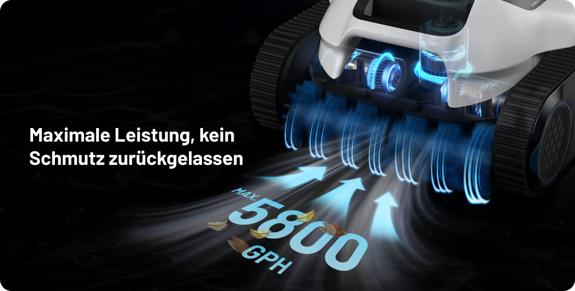 5800 GPH Saugleistung für besonders intensive Reinigung