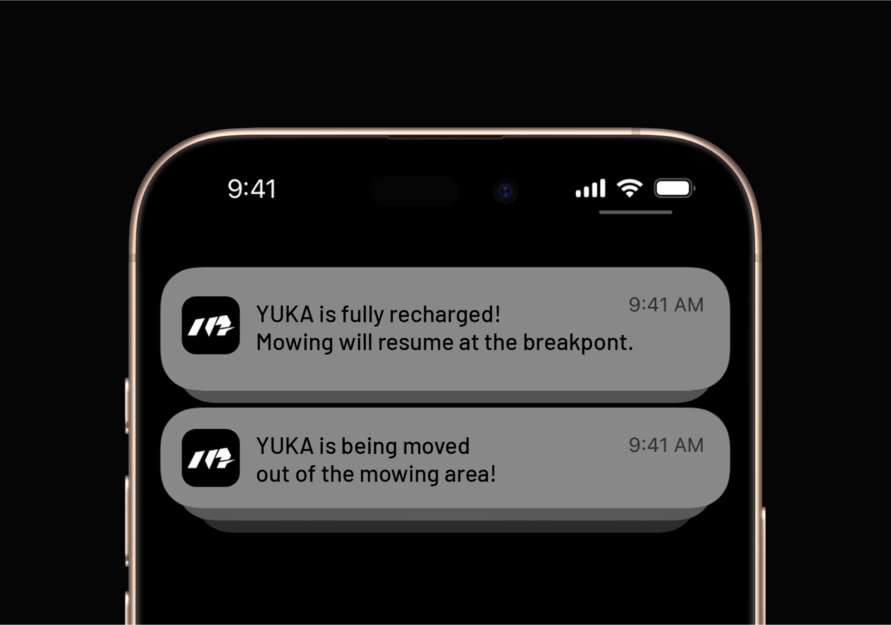 Mit nur wenigen Klicks in der App erkennt YUKA automatisch Begrenzungen und erstellt virtuelle Karten für Flächen bis zu 3000 m² – ganz ohne manuelle Einrichtung.
