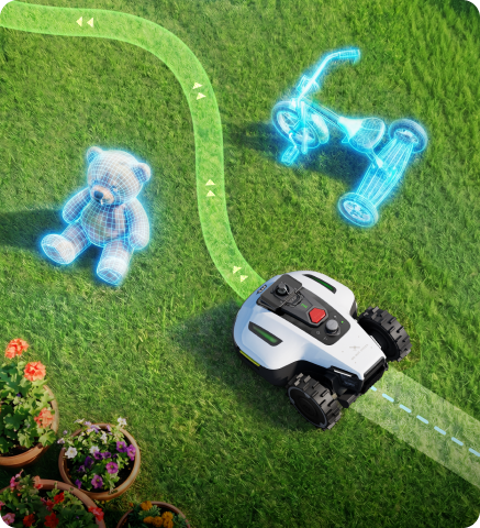 Mit einem kombinierten LiDAR- und Vision-Kamerasystem erkennt der YUKA mini 2 1000 Mähroboter ohne Kabel über 300 Hindernisse und berechnet deren Bewegungsrichtung, um intelligent und schnell auszuweichen - für sicheres und reibungsloses Mähen.