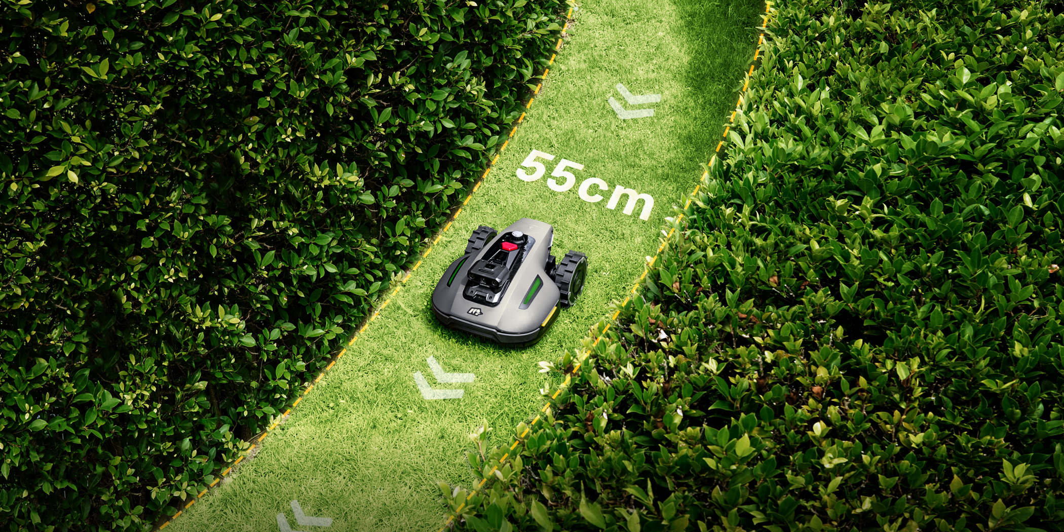Navigiert mühelos durch enge Passagen mit 55 cm Breite und passt sich nahtlos jedem Gelände an.