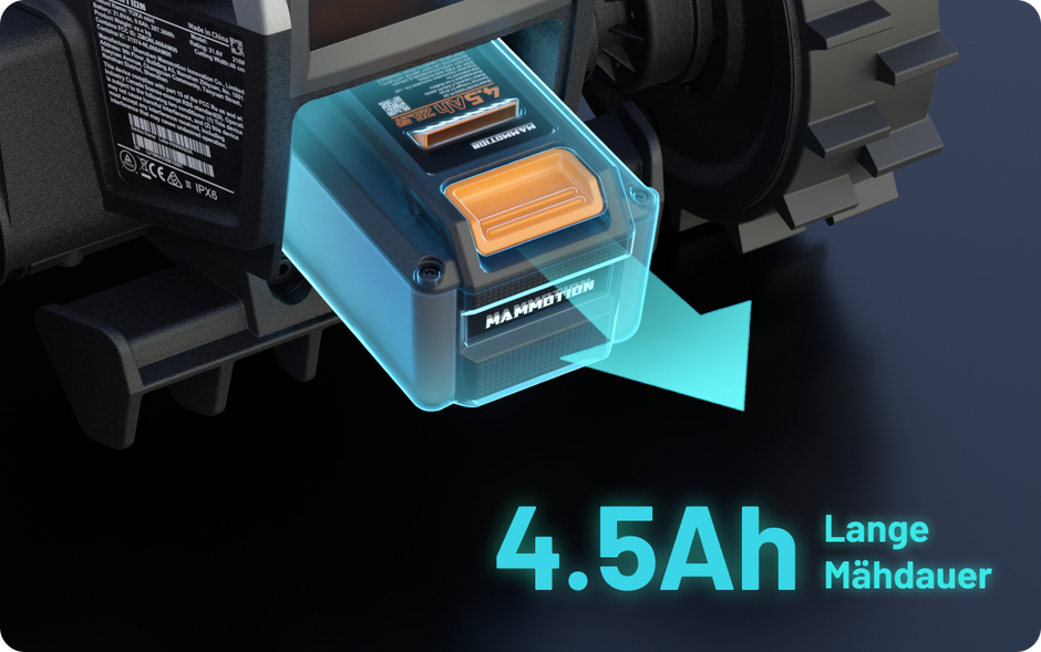 Der YUKA mini Vision ist mit einem herausnehmbaren 4,5Ah-Akku ausgestattet, der eine längere Schnittzeit ermöglicht. Wechseln Sie die Batterien einfach aus, damit Ihr Mäher ohne Unterbrechung läuft.