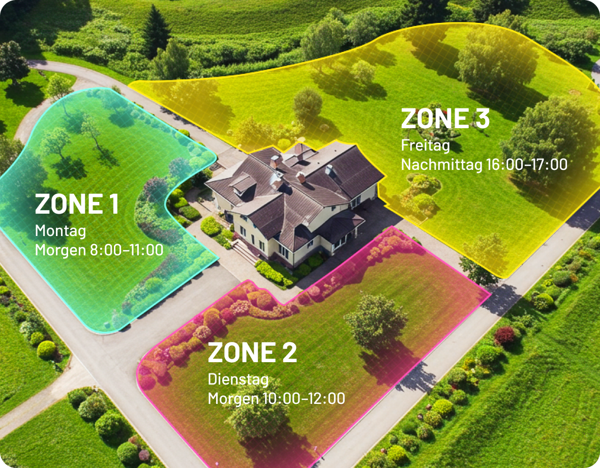 - Absetzen & Mähen – auch auf nicht kartierten Rasenflächen