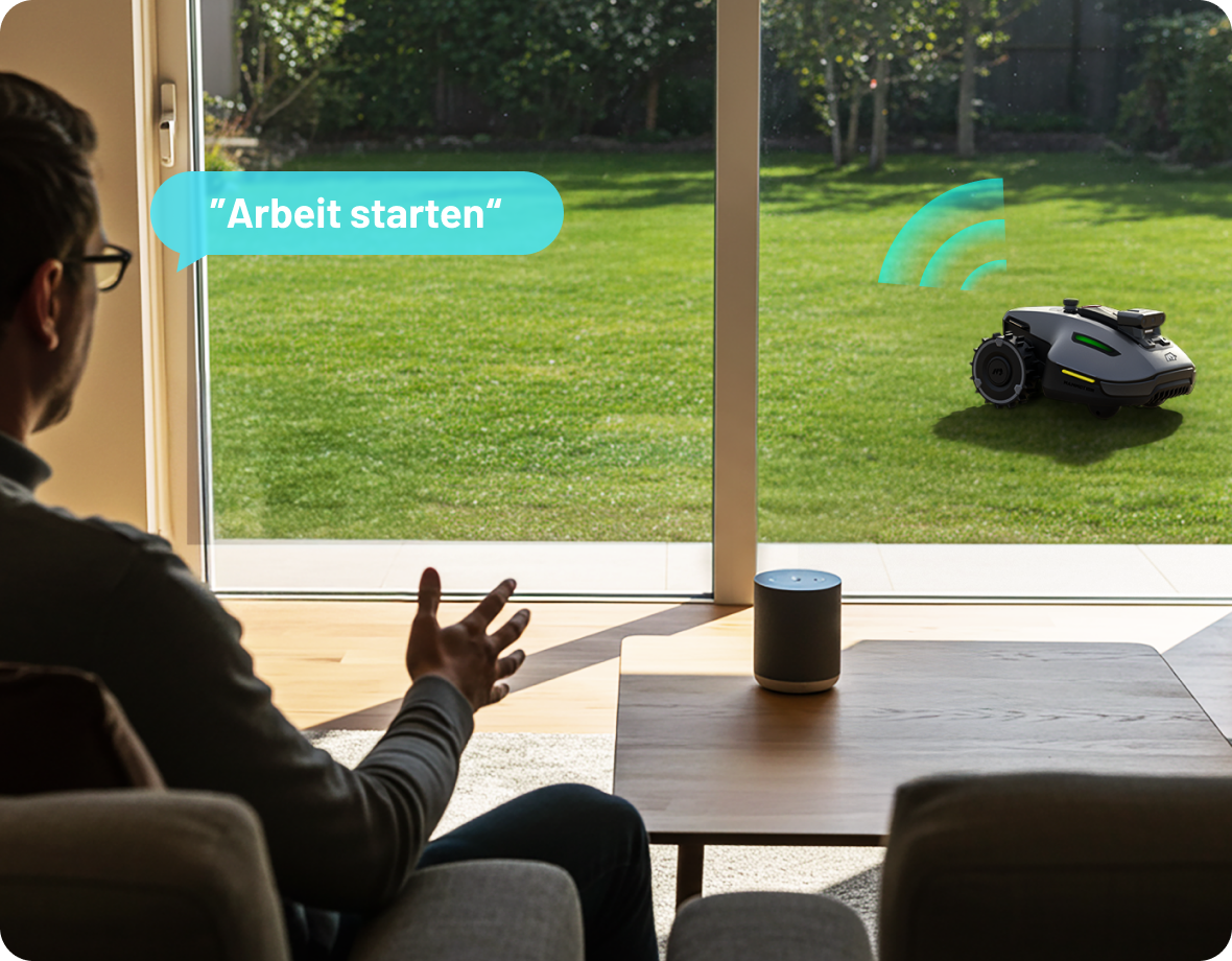 Starten, stoppen oder planen Sie Mähvorgänge ganz einfach per Sprachbefehl über Alexa oder Google Home – für ein echtes Freihand-Erlebnis.